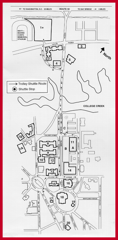 Public parking also available off Calvert St.: 1A. Gott's Court Garage 1B. Whitmore Garage
