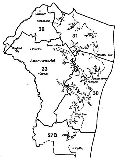Map of Maryland Legislative Election Districts (parts of Anne Arundel County),