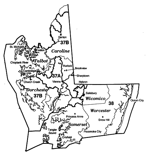Map of Maryland Legislative Election Districts (Lower Eastern Shore),