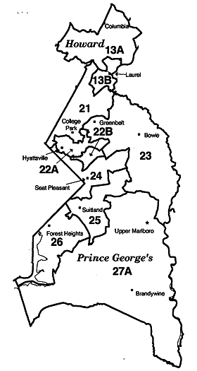 Map of Maryland Legislative Election Districts (parts of Prince George's County & Howard County), courtesy of Office of Planning